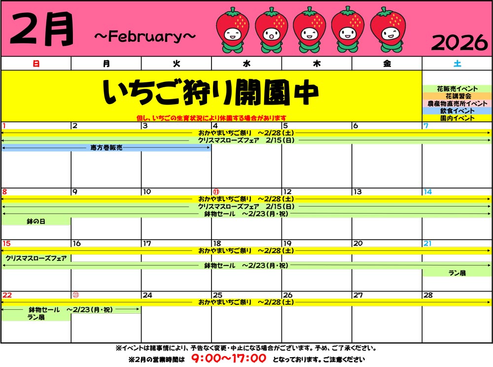 2月のイベントカレンダーです。